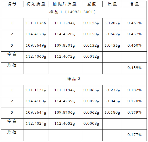 抽提完成以后,烘干到恒重,再次稱取溶劑杯質(zhì)量m2,增重法計(jì)