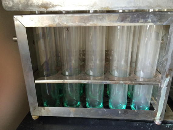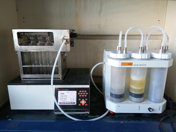 用萬分之一天平,差減法稱取1g左右的樣品于消化管中,加入8ml濃硫酸,并加入3g硫酸鉀和0.2g硫酸銅催化劑。做空白實(shí)驗(yàn)。