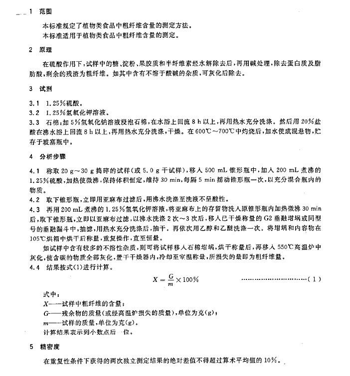 植物類食品中粗纖維測定 GB/T5009.10-2003