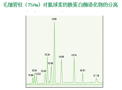 毛細管柱。圖15所示的是用內徑75µm的毛細管柱對肌球素的胰蛋白酶消化物分離的例子。