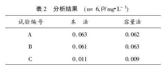 按試驗方法對該廠銅電解液分析, 結果與容量法對照見表2。