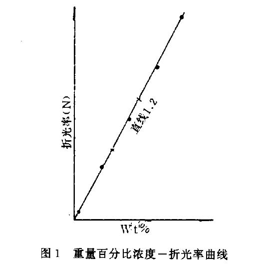 折光指數(shù)可以測定己內(nèi)酰胺水溶液的濃度,且具有簡便、快速、準確的特點;通過配制樣品的測定,重量百分比濃度為0—20%己內(nèi)酰胺水溶液的折光指數(shù)隨其濃度的變化曲線為一直線;本文測定條件下,己內(nèi)酰胺濃度與折光指數(shù)的線性方程為:y=0.1638x + 1.3329。